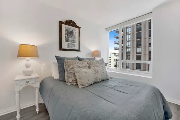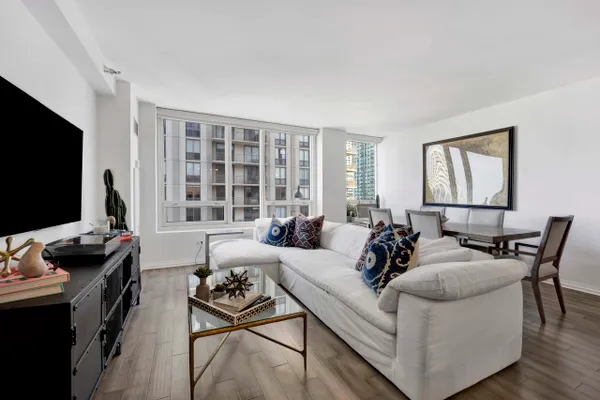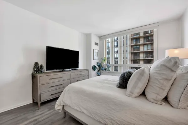 Welcome to this beautifully renovated 2-bedroom, 2-bath residence in one of River North's premier full-service high-rises. Designed for modern living, this spacious home features an open floor plan with exceptional flow and stylish, high-end finishes throughout. The sleek white kitchen is a chef's dream, featuring stainless steel appliances, custom lighting, and an oversized island that offers extra seating and prep space-perfect for entertaining. Updated flooring runs throughout the entire unit, complemented by Hunter Douglas automatic custom window treatments for added comfort, privacy, and style.The oversized primary suite is a true retreat, offering expansive his-and-hers professionally organized closets and a spa-inspired en-suite bath with dual vanity, soaking tub, and elegant marble tile. The spacious second bedroom is perfect for guests or a home office, and the updated guest bath features modern finishes.This home also includes in-unit washer/dryer, generous storage, and a storage locker. One parking spot available for an additional $25,000.Enjoy full access to premium building amenities: 24-hour door staff, package delivery to your door, fitness center, pool, sundeck, party room, conference room, and on-site dry cleaners.Located in the vibrant heart of River North, you're just steps from the Magnificent Mile, Nordstrom, Eataly, Whole Foods, Trader Joe's, and some of the city's best dining and shopping. With a Walk Score of 99 and easy access to the Loop, public transit, and expressways, this is true city living at its finest.