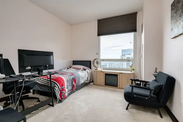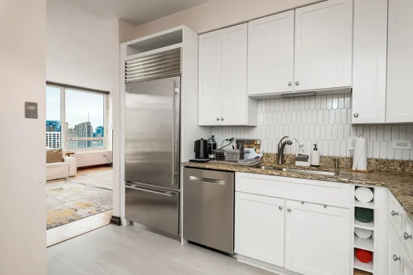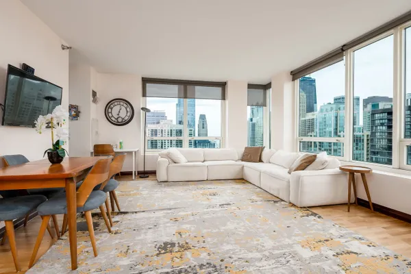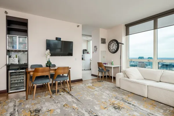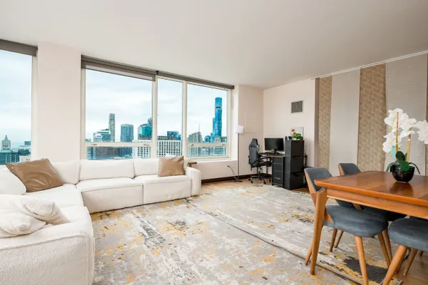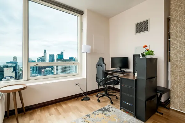 Modern high-floor condo at 33 W Ontario St, Unit 47A, offering sweeping city views in the heart of River North. This bright and open residence features floor-to-ceiling windows, a functional open-concept layout, and a sleek kitchen with stainless steel appliances. The spacious living area is ideal for everyday living and entertaining, while the bedroom provides a comfortable retreat with ample storage. Full-amenity building with door staff and fitness center, just steps from dining, shopping, nightlife, and public transportation.